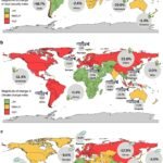 Changes in the average food (a), climate (b) and biodiversity (c) potential of aquaculture production by major geographic region and country between 1976 and 2023, as a percentage of each region's theoretical maximum FCB score. Source: Wong et al. (2026), Climate and Biodiversity Challenges. Fish and Fisheries 1–14.