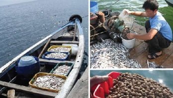 b. La disminución de animales acuático de bajo valor que son extensamente pescado y usados como alimento para los peces de cultivo.