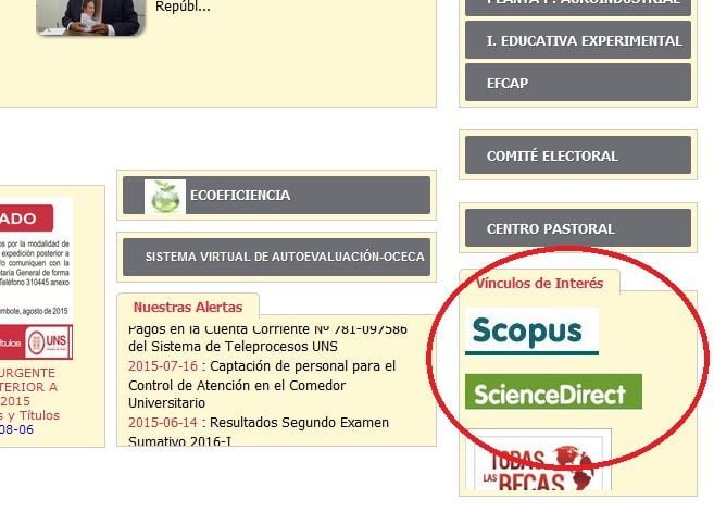 Las base de datos Science Direct y Scopus están a disposición de cualquier universidad pública, instituto de investigación, organismos gubernamentales e investigadores inscriptos en el Directorio Nacional de Investigadores.